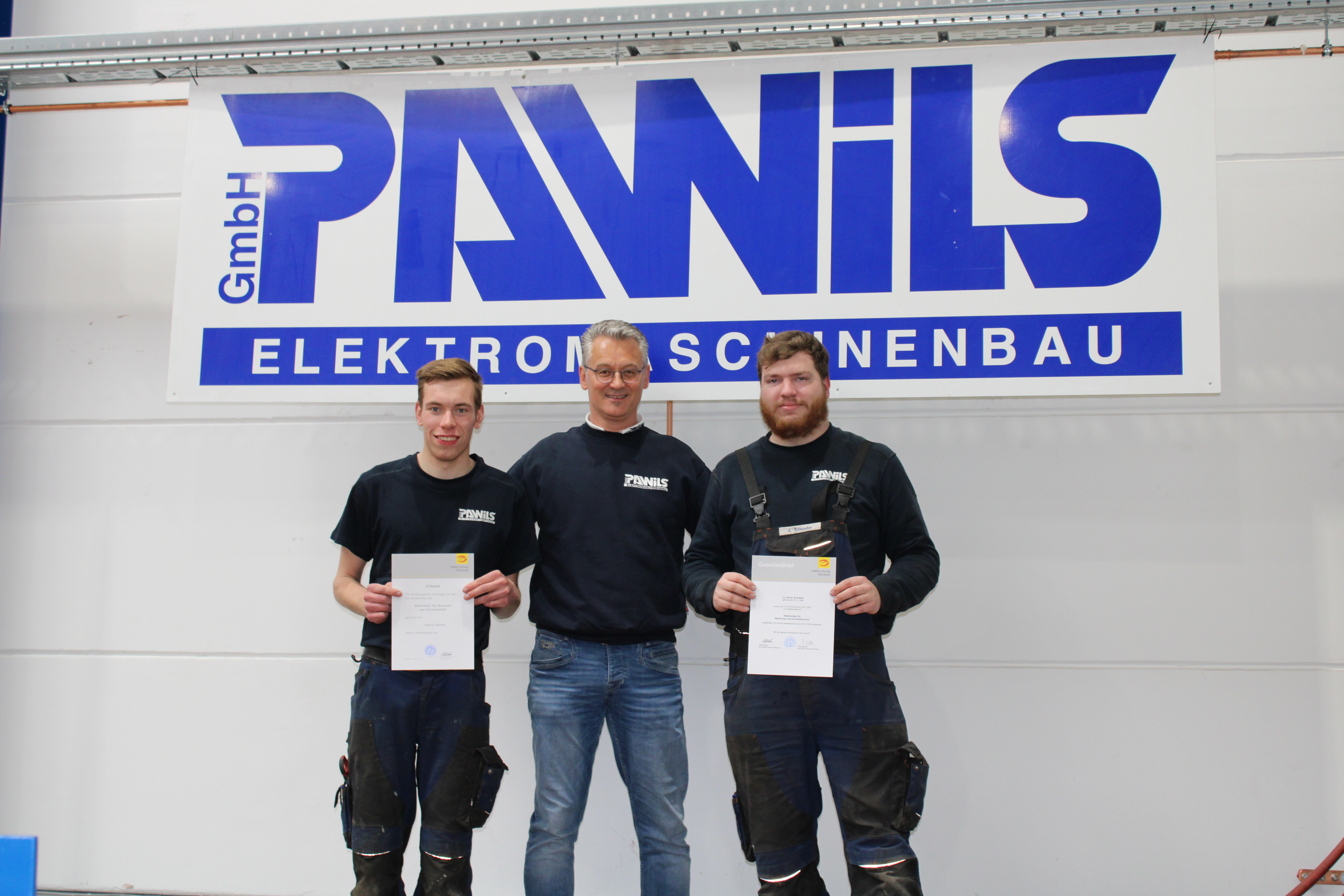 Wir dürfen offiziell verkünden, dass unsere beiden Lehrlinge Ihre Gesellenprüfung gemeistert und den staatlich zertifizierten Gesellenbrief der Elektro-Innung Hannover zum Elektroniker für Maschinen und Antriebstechnik erhalten haben.
